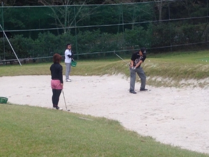 コースでの実践レッスンです。練習場では味わうことのできない緊張感のなかでプレー、ルールやマナーも覚えることができます。